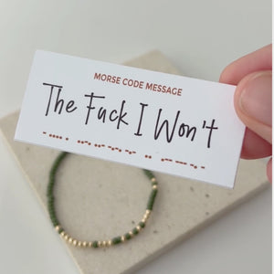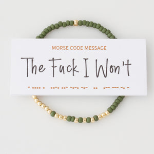 Say it louder (or keep it quiet to yourself), our "The Fuck I Won’t" Morse Code Bracelet is a little resistance you can wear on your wrist. When you've had enough and words fail.